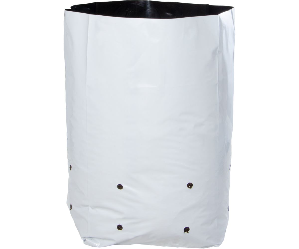 This update to our classic Hydrofarm grow bags features a new durable white plastic outer layer – so you can write details like plant type, planting dates and growing notes, right on the bag! The white surface also reflects light, helping keep plants’ roots cooler. These bags are a great low-cost alternative to plastic pots used by greenhouse growers. And as always, they’re made from a specially formulated plastic that provides for a longer life than any other on the market.